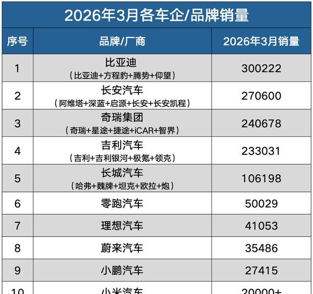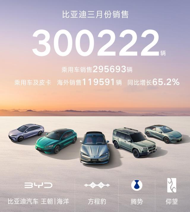 在国内的话,2026年3月份,比亚迪销量300222台,是“中国车企销冠”。